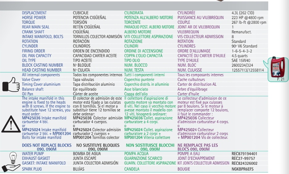 BLOC NEUF GM V6 4.3L VORTEC 2008+ MERCRUISER 879150A31