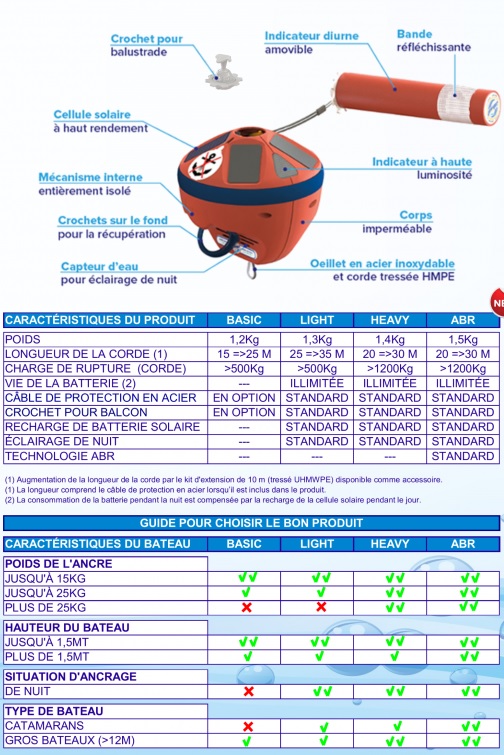 Limiteur de dérive dynamique (la bouée reste parfaitement à la perpendiculaire de l’ancre en cas de houle et de ventes forts)