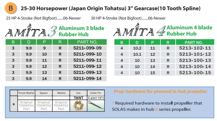 Hélice SOLAS MERCURY 25 - 30CV 4T (10 cannelures) 9.9 x 11 5211-099-11