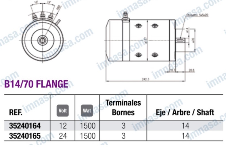 MOTEUR COLLIER B14/70 24V 1500W 3T-14mm CIMA 1915 30397T