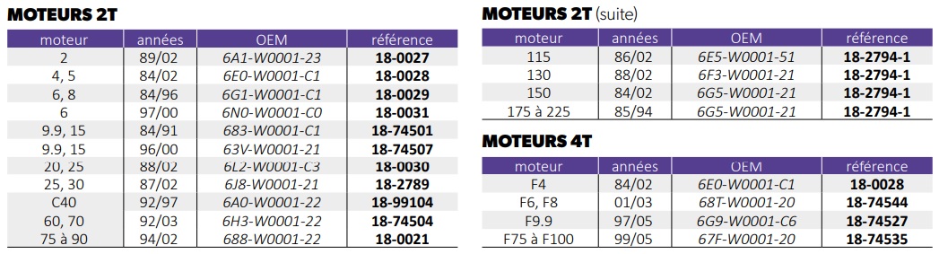 POCHETTE JOINTS EMBASE SIERRA 18-2798 YAMAHA 688-W0001-20-00, 688-W0001-C0-00