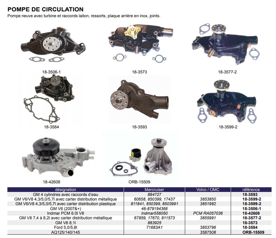 POMPE DE CIRCULATION SIERRA 18-3506-1 MERCRUISER OEM 46-879194366, 46-879194401, 46-8M0094406, 46-8M6005225
