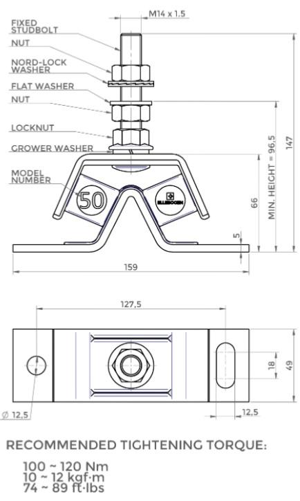 SUPPORT MOTEUR TYPE YANMAR DURETE 40 / 50 KG MAX 1GM, 1GM110 OEM 128170-08340