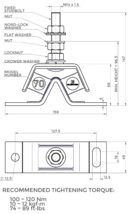 SUPPORT MOTEUR TYPE YANMAR DURETE 70 / 50 KG MAX 1GM, 1GM110 OEM 128170-08350